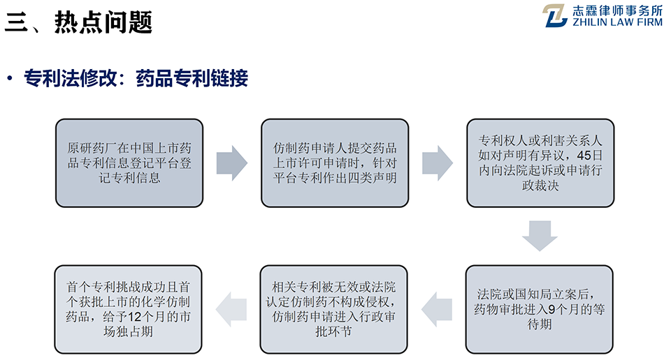 2021年6月9日下午,志霖讲堂系列“中国专利法律业务的挑战与机遇”实务研讨会在志霖律师事务所北京总部成功举办。本期研讨会由志霖律师事务所知识产权部负责人进行分享。本次研讨会的内容涉及:专利的制度价值与重要性、中国专利保序制度的现状、药品专利链接、药品保护期延长等专利保护的热点问题。