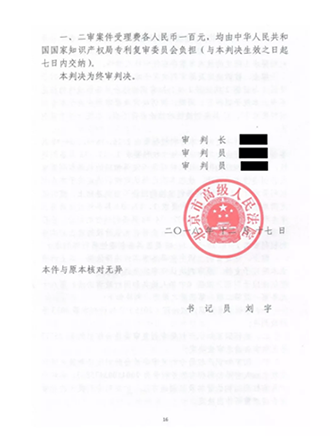 2014年阮某(无效程序请求人)针对涉案专利权向专利复审委员会提出无效宣告请求,2015年初专利复审委员会作出无效决定维持涉案专利全部有效,阮某(一审原告)不服被诉无效决定,向北京知识产权法院提起行政诉讼请求撤销无效决定,2017年底北京知识产权法院判决驳回阮某的诉讼请求,2018年初阮某又向北京市高级人民法院提起上诉。在经历无效程序和行政诉讼一审两次失败后,当事人委托志霖法律代理行政二审。我所接受委托后,对本案高度重视,立即抽调办案经验丰富的律师和专利代理人组成专业团队,对无效程序和本案一审阶段的案件材料进行仔细研究,同时翻阅大量本领域相关技术资料了解相关技术背景、分析焦点技术特征,历经多次内部讨论和演练,理清应对策略和思路,并精心准备代理意见和庭审演示文稿,最终依靠专业的服务为客户赢得了胜诉结果!