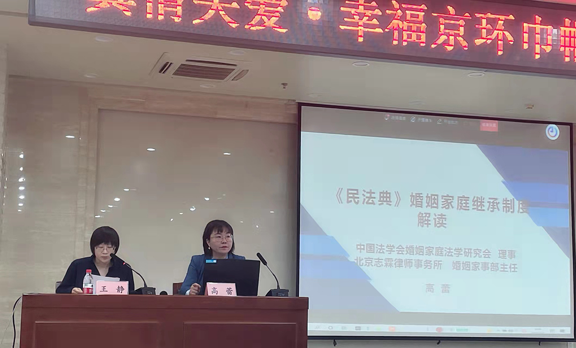 2022年3月以来,北京志霖律师事务所婚姻家事专业委员会主任高蕾律师受中央电视台、中央和市属企业、基层妇联组织等单位和机构的邀请,主讲了多场线上线下公益讲座,讲座内容涉及民法典、妇女权益保障法、家庭教育促进法、婚姻家庭中的妇女权益保障、家族财富传承等多个领域。