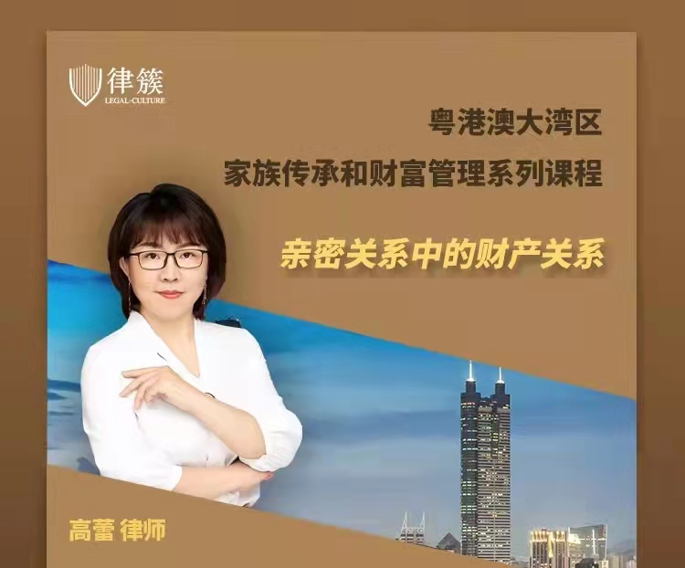 2022年3月5日上午,高蕾律师受律簇公众号邀请,为身处疫情管控中的深圳地区律师同行送去了一场线上公益讲座。本次讲座以“亲密关系中的财产关系”为主题完成了“粤港澳大湾区家族传承和财富管理系列课程”的一讲,就同居关系财产纠纷、夫妻共同财产认定、四类婚姻财产协议等主题进行了重点讲解。