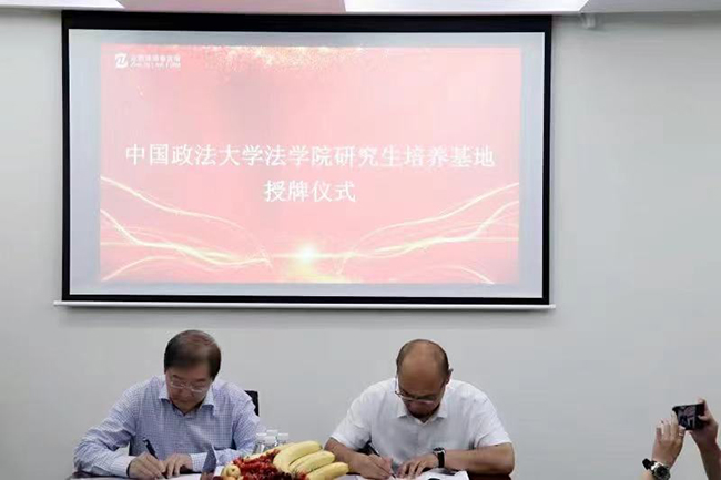 之后举行了“中国政法大学法学院研究生实习基地”的揭牌仪式,由院长助理陈维厚老师介绍并宣布中国政法大学建立志霖研究生联合培养基地,焦洪昌院长与雷志刚主任为中国政法大学联合培养基地揭牌,北京志霖律师事务所成为了中国政法大学法学院实践教学基地。