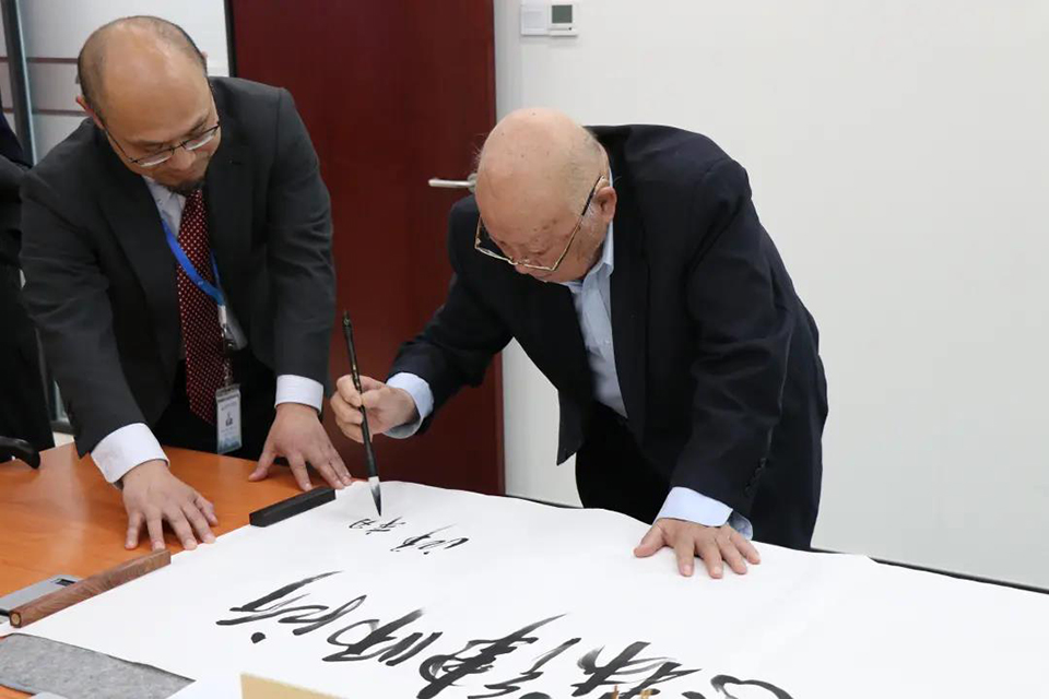 志霖律师事务所对江平校长一行的到来表达了热烈的欢迎,并对江校长敬献了鲜花。