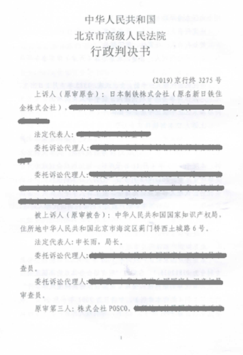 近日,上诉人日本制铁株式会社(原名新日铁)、被上诉人国家知识产权局与原审第三人株式会社POSCO发明专利权无效行政诉讼二审案件落下帷幕,北京市高级人民法院作出(2019)京行终3275号行政判决书,驳回上诉人的上诉请求。志霖法律高级合伙人曾迪律师和李勤律师代理的原审第三人POSCO再次获得胜诉判决。