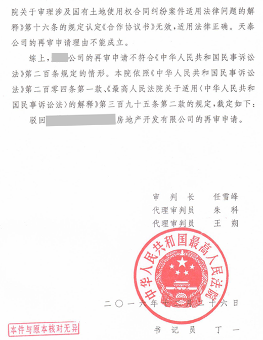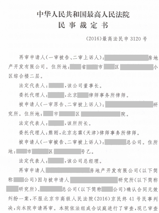 近日,由志霖法律熊刚律师代理的某科研所合作开发房地产合同无效再审案件胜诉,中华人民共和国最高人民法院民事裁定书【(2016)最高法民申3120号】裁定驳回了再审申请人某房地产开发有限公司的再审申请。